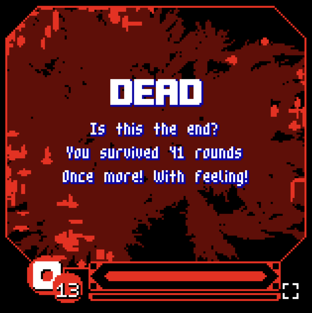 made it to wave 31 god the blood drop rate is crazy; i like the fact that there aren't any new weapons or more complicated enemies yet it makes me really dig into this simple yet cohesive core mechanic; love it a lot great work as always i want to make such good gameplay foucsed game like you wow